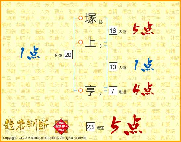 塚上亨さんの総運は23画の5点!