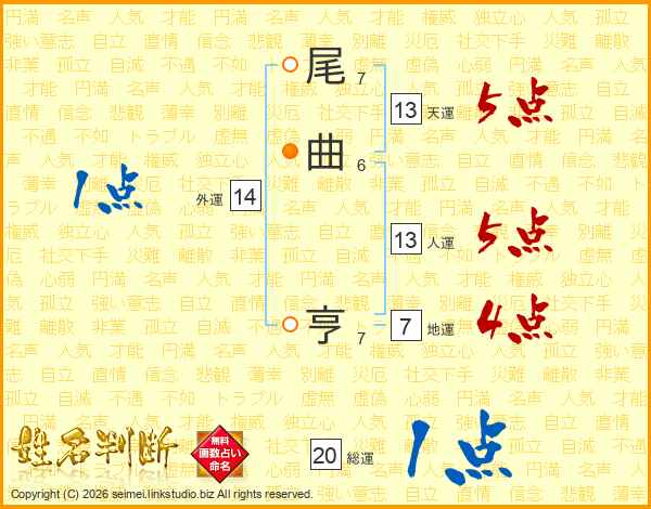 尾曲亨さんの人運は13画の5点!