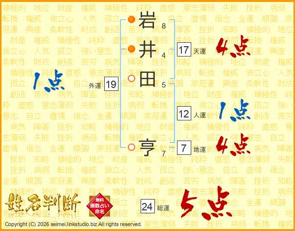 岩井田亨さんの総運は24画の5点!