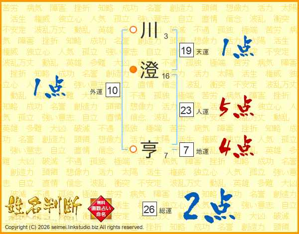 川(3画)澄(16画) 亨(7画)