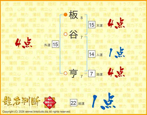 板谷亨さんの総運は22画の1点!