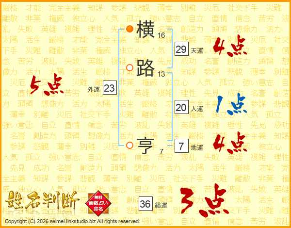 横(16画)路(13画) 亨(7画)