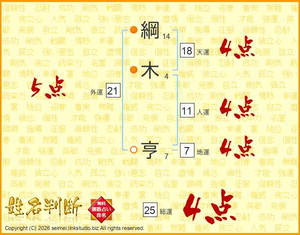 綱木亨さんの総運は25画の4点!