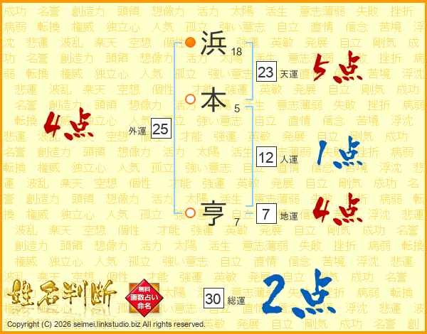 浜(18画)本(5画) 亨(7画)