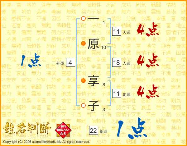 一原享子さんの地運は11画の4点!