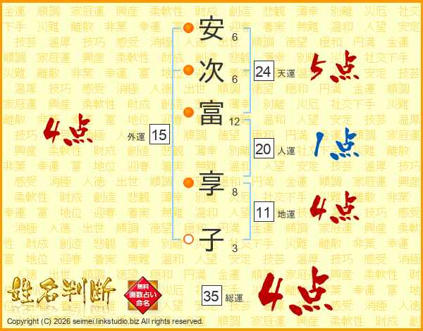 安次富享子さんの総運は35画の4点!