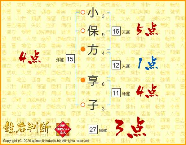 小保方享子さんの外運は15画の4点!