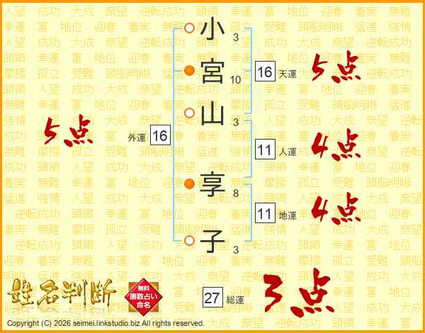 小宮山享子さんの総運は27画の3点!
