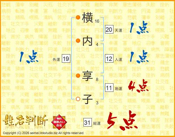 横内享子さんの総運は31画の5点!