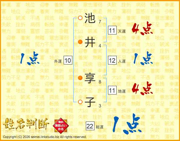 池井享子さんの総運は22画の1点!