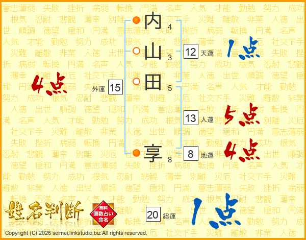 内山田享さんの人運は13画の5点!
