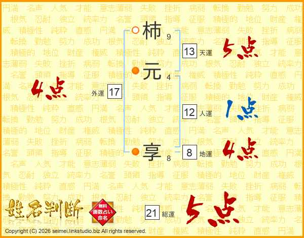 柿元享さんの総運は21画の5点!