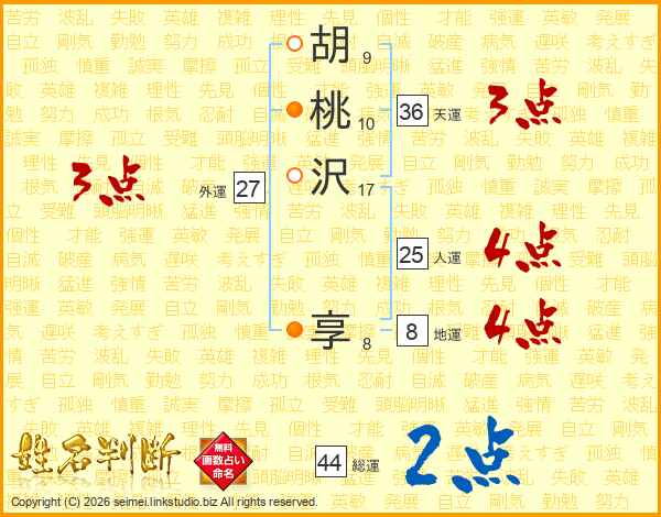 胡(9画)桃(10画)沢(17画) 享(8画)