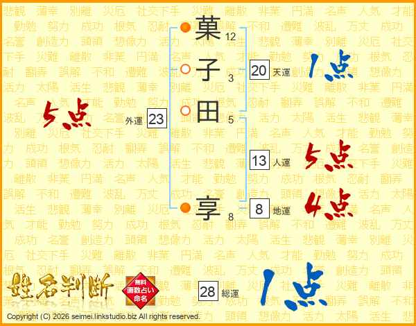 菓子田享さんの人運は13画の5点!
