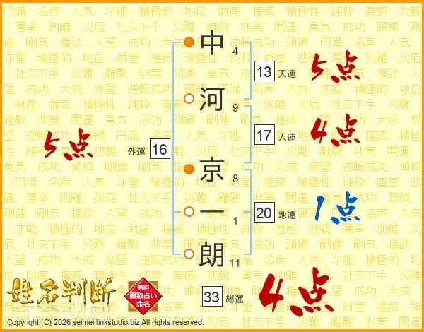 中河京一朗さんの総運は33画の4点!