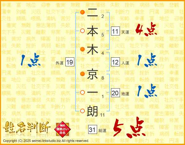 二本木京一朗さんの天運は11画の4点!