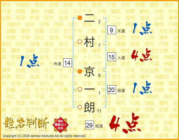 二村京一朗さんの総運は29画の4点!