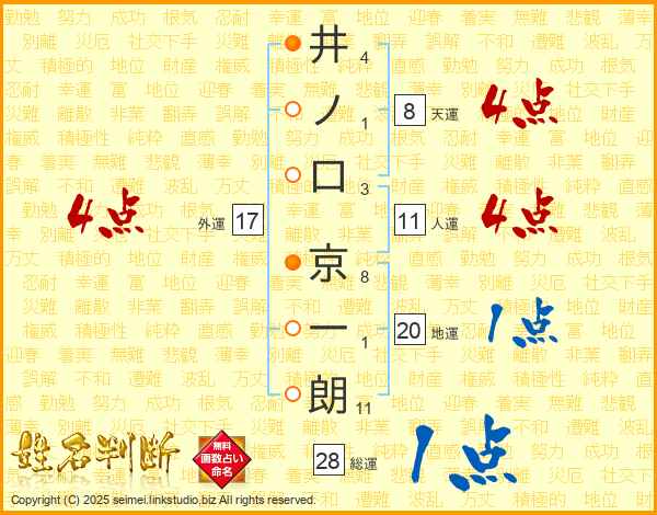 井ノ口京一朗さんの人運は11画の4点!