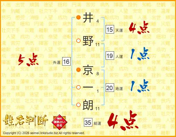 井野京一朗さんの総運は35画の4点!