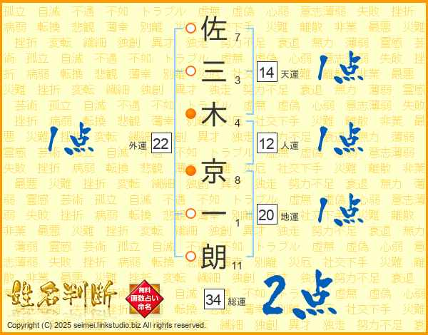 佐三木京一朗さんの天運は14画の1点!