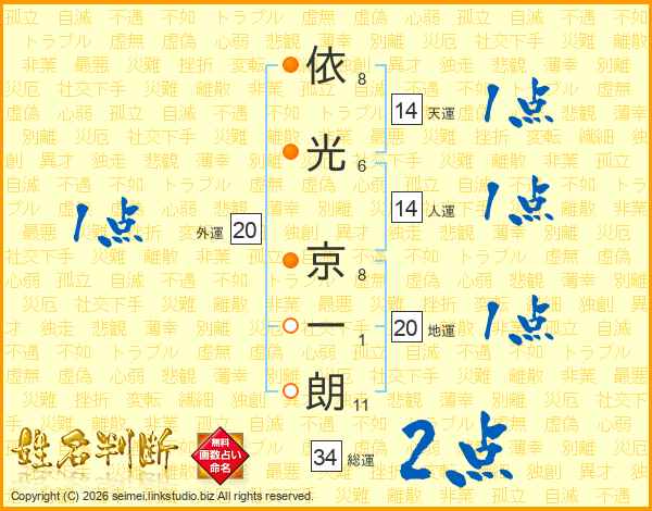 依光京一朗さんの天運は14画の1点!
