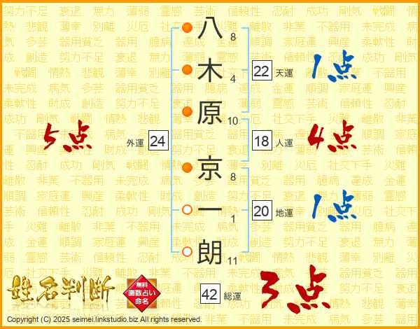 八木原京一朗さんの天運は22画の1点!