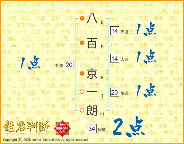 八(8画)百(6画) 京(8画)一(1画)朗(11画)