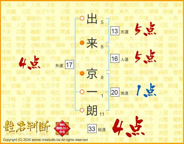 出来京一朗さんの総運は33画の4点!
