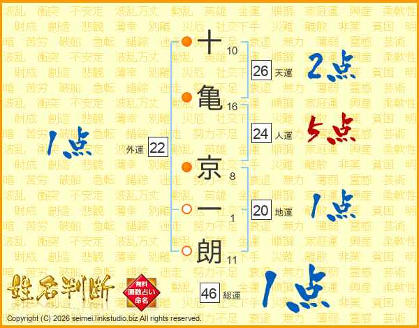 十亀京一朗さんの天運は26画の2点!