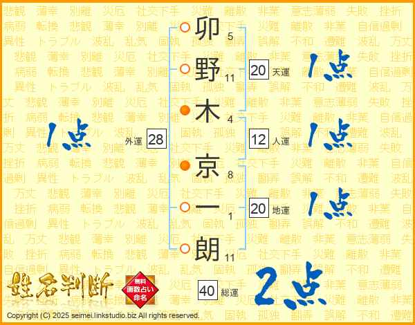 卯野木京一朗さんの総運は40画の2点!