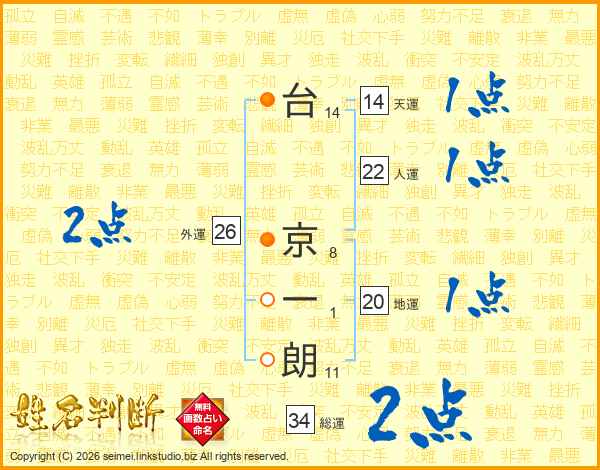 台京一朗さんの天運は14画の1点!