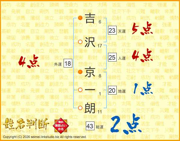吉沢京一朗さんの総運は43画の2点!