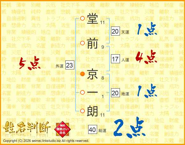 堂前京一朗さんの総運は40画の2点!