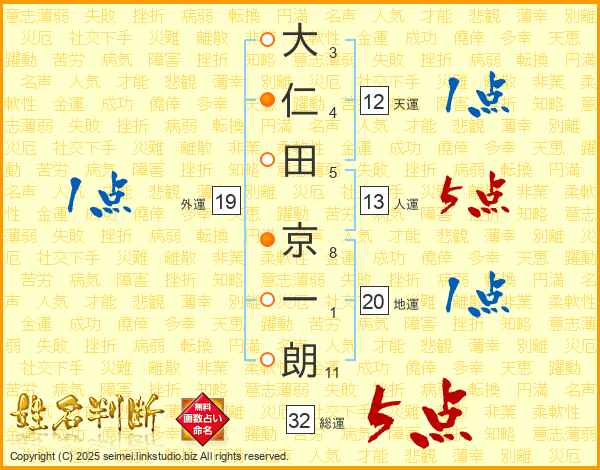 大仁田京一朗さんの総運は32画の5点!