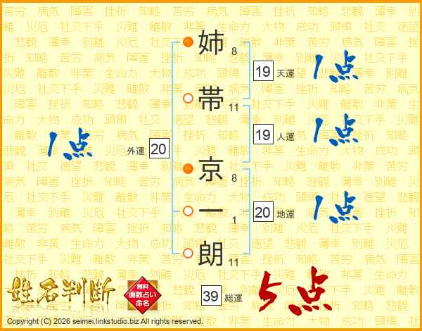 姉帯京一朗さんの総運は39画の5点!