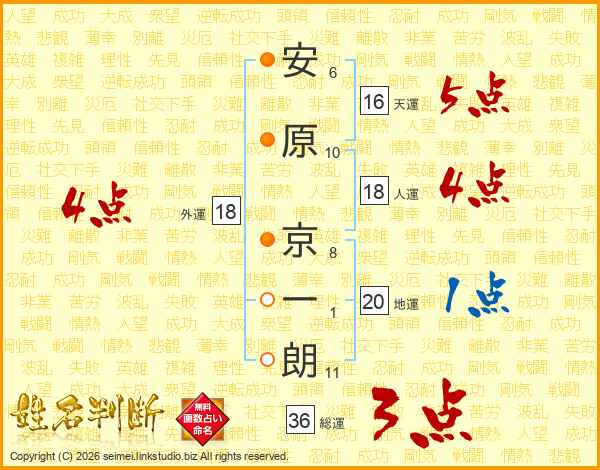 安原京一朗さんの総運は36画の3点!