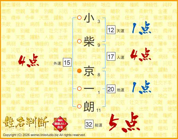 小柴京一朗さんの総運は32画の5点!