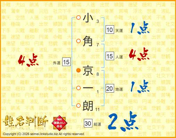 小角京一朗さんの総運は30画の2点!