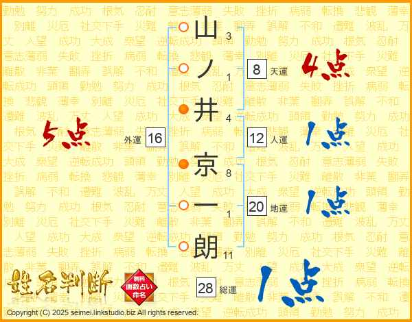 山ノ井京一朗さんの総運は28画の1点!