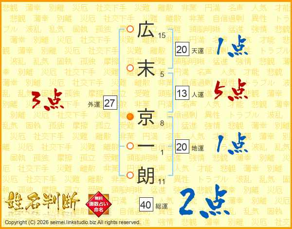 広末京一朗さんの総運は40画の2点!