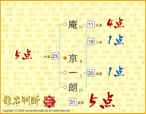 庵京一朗さんの総運は31画の5点!