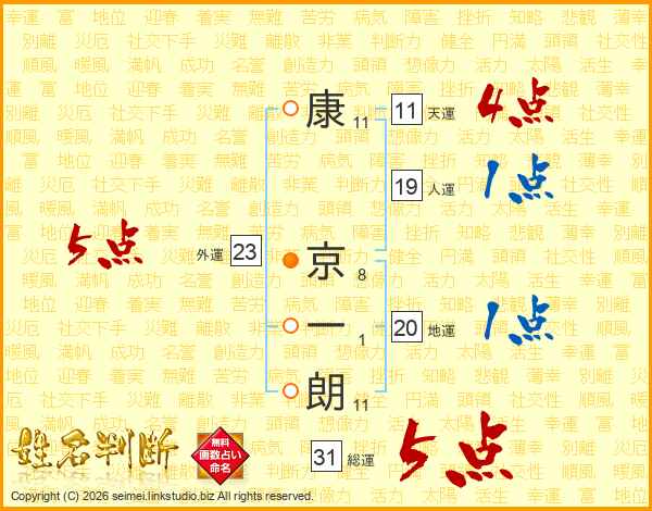 康京一朗さんの総運は31画の5点!