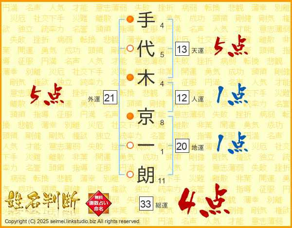 手代木京一朗さんの総運は33画の4点!