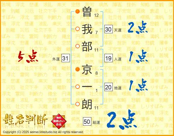 曽我部京一朗さんの天運は30画の2点!