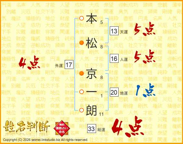 本松京一朗さんの総運は33画の4点!