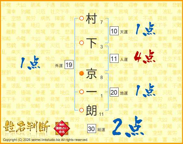 村下京一朗さんの総運は30画の2点!