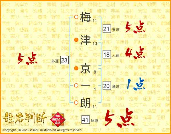 梅津京一朗さんの天運は21画の5点!