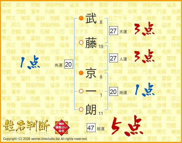 武藤京一朗さんの総運は47画の5点!