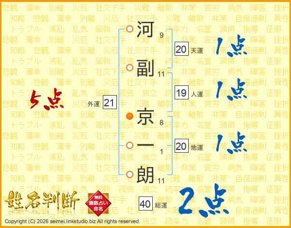 河副京一朗さんの天運は20画の1点!