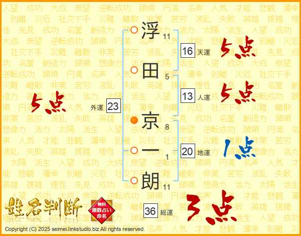 浮田京一朗さんの人運は13画の5点!